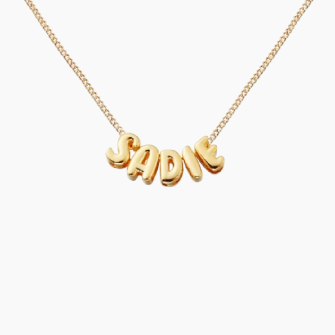 This Bubble letter name necklace is available in three different colours: Gold, Silver and Rose Gold - Perfect for everyday wear