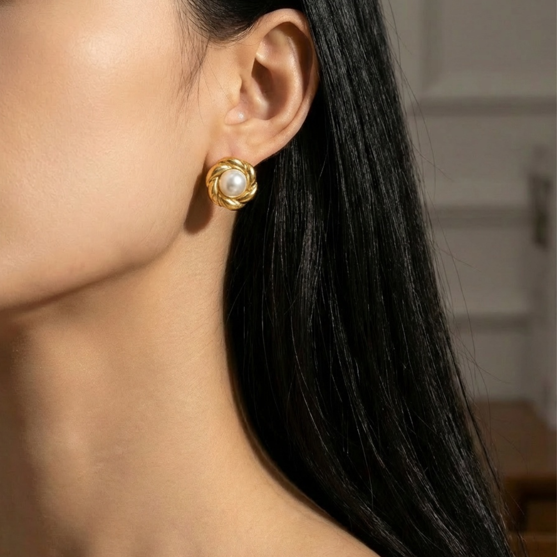 Pearl flower round earrings